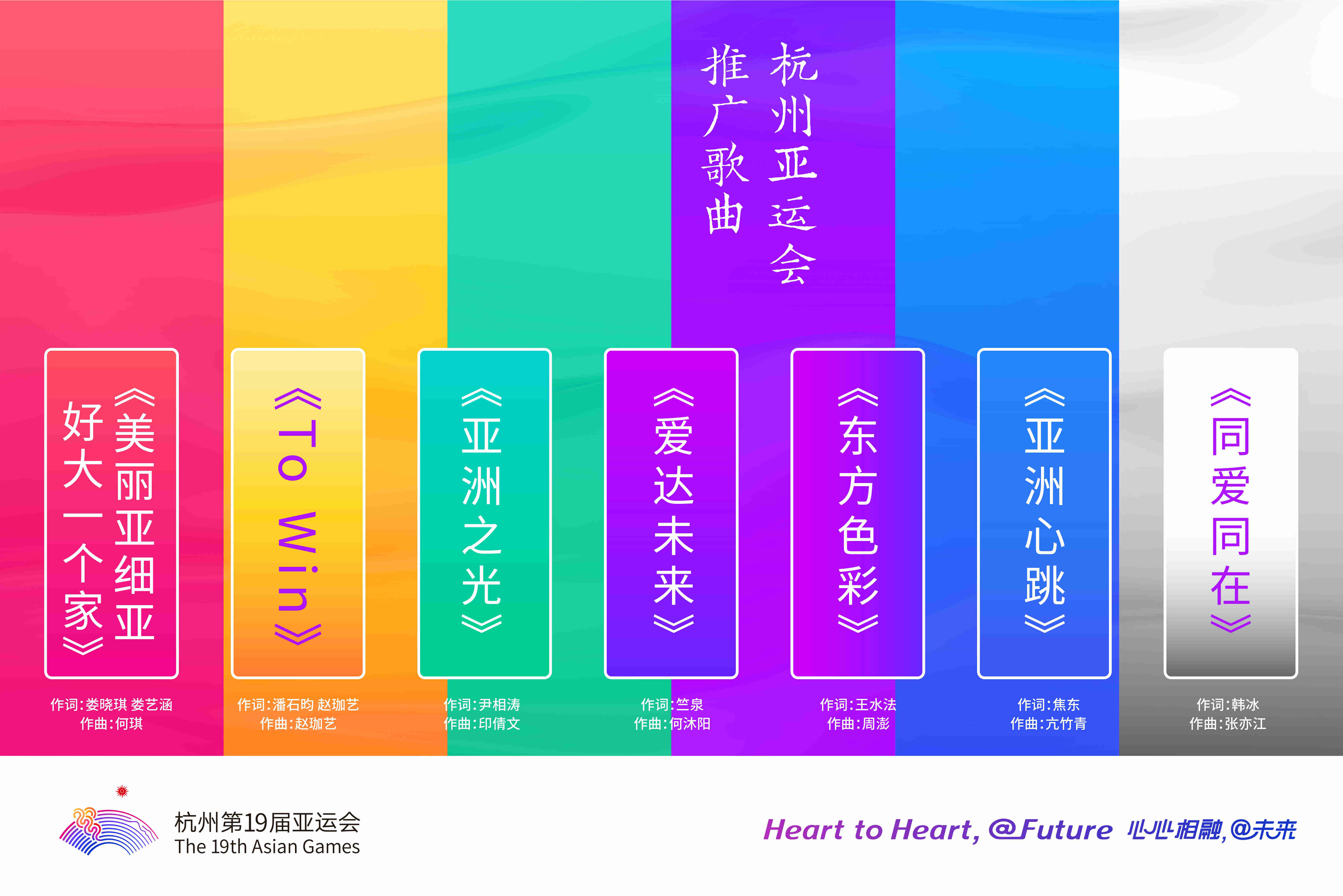 此次發(fā)布的《同愛同在》《亞洲心跳》《東方色彩》《愛達(dá)未來》《亞洲之光》《To Win》《美麗亞細(xì)亞 好大一個家》七首杭州亞運(yùn)會推廣歌曲彰顯了不同的音樂風(fēng)格,傳遞對亞運(yùn)盛會的祝福和期待。