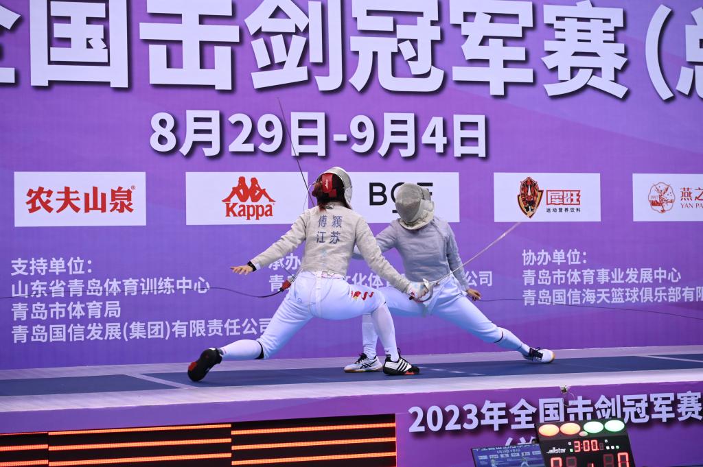 新華社青島9月1日電(記者董意行、張武岳)2023年全國擊劍冠軍賽(總決賽)31日在青島國信體育中心體育館進入成年組的爭奪。黃夢愷、江晨陽和傅穎分別奪得男子花劍、男子重劍及女子佩劍個人冠軍。