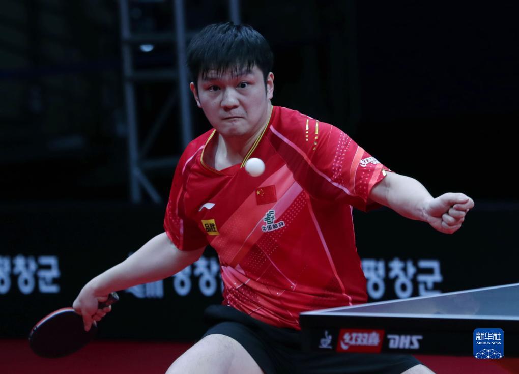 9月10日,樊振東在比賽中回球。新華社發(fā)(李相浩攝)