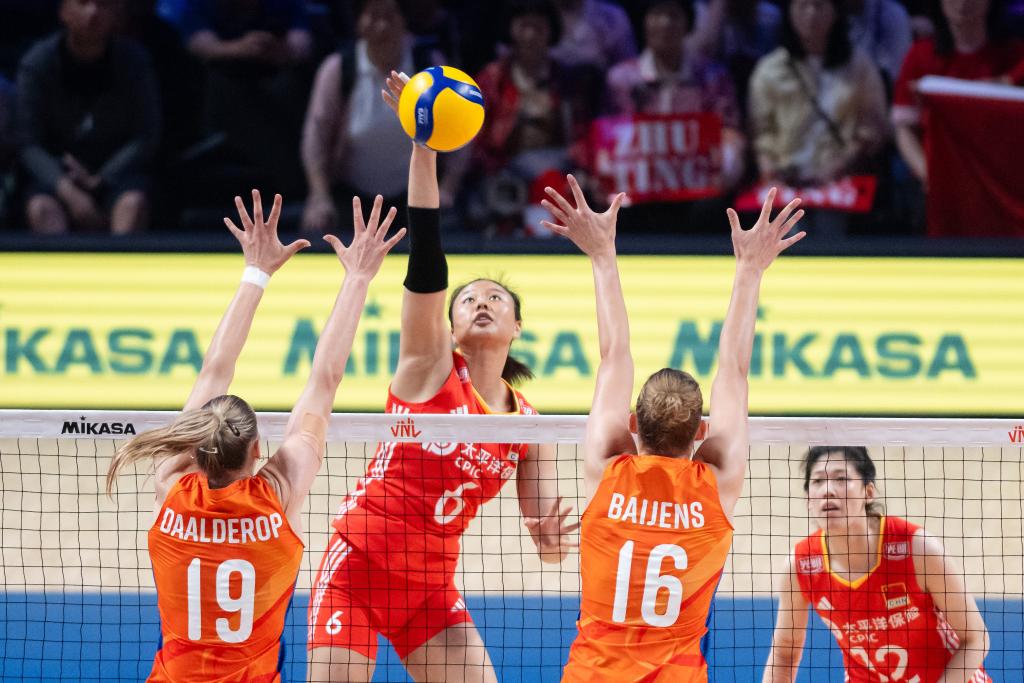 首局比賽中國(guó)隊(duì)失誤較多,荷蘭隊(duì)取得13:6的領(lǐng)先。中國(guó)隊(duì)請(qǐng)求暫停后迅速調(diào)整狀態(tài),一度將分差縮小至3分,但最終還是以21:25告負(fù)。第二局,中國(guó)隊(duì)在開(kāi)局落后的情況下依靠多點(diǎn)進(jìn)攻在后半段反超比分,以25:23扳平大比分。士氣大振的中國(guó)女排在接下來(lái)的比賽中掌握了主動(dòng),進(jìn)攻更加積極,以25:23、25:21連下兩局贏得勝利。