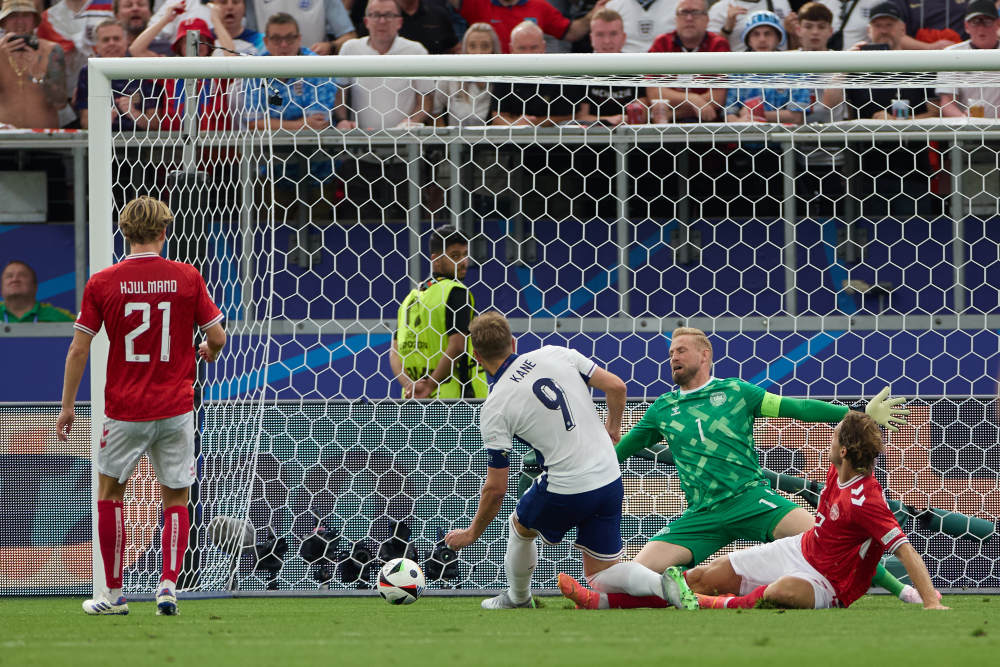 第18分鐘,英格蘭隊(duì)沃克下底后倒三角傳中,凱恩門前推射打破僵局。第34分鐘,丹麥隊(duì)中場(chǎng)摩頓·尤爾曼轟出一腳無解世界波,皮球如炮彈般擊中立柱內(nèi)側(cè)入網(wǎng),英格蘭隊(duì)守門員皮克福德鞭長(zhǎng)莫及。下半場(chǎng)雙方均破門乏術(shù),福登第56分鐘遠(yuǎn)射擊中立柱,是英格蘭隊(duì)下半場(chǎng)最有威脅的機(jī)會(huì)。英格蘭隊(duì)主教練索斯蓋特早早換下前場(chǎng)三叉戟,本賽季在切爾西發(fā)揮出色的小將帕爾默依舊沒能獲得出場(chǎng)機(jī)會(huì)。1:1的比分保持到終場(chǎng)。