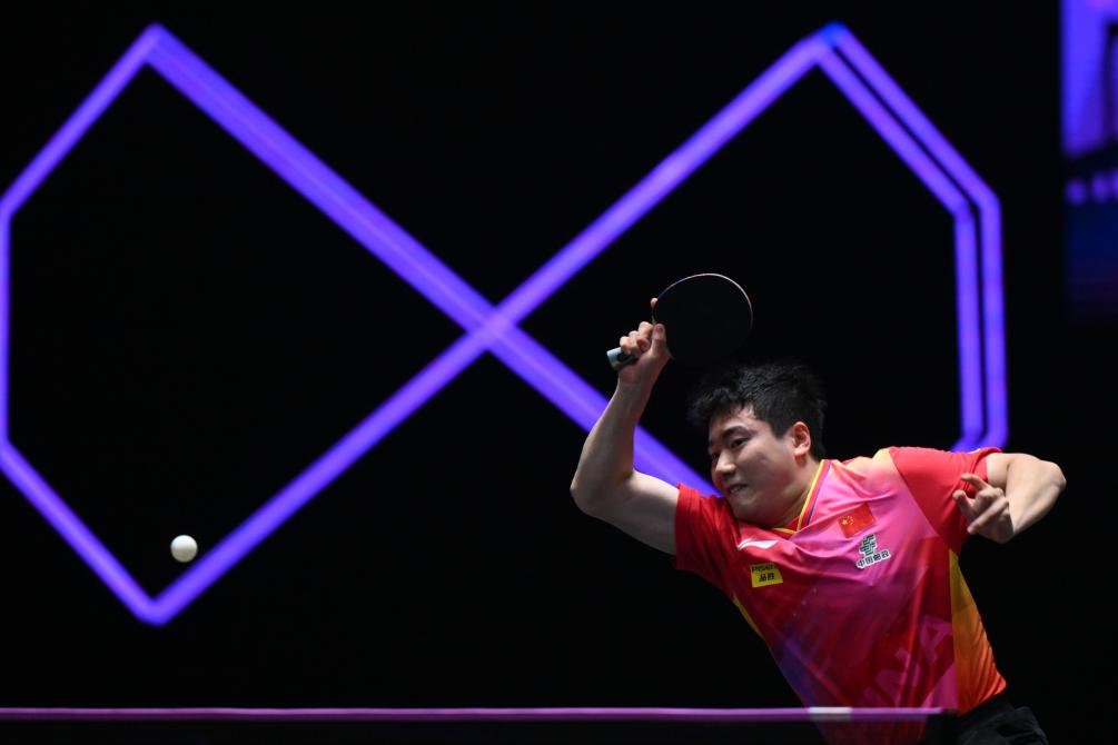 9月9日,梁靖崑在比賽中回球。新華社記者 張金加 攝