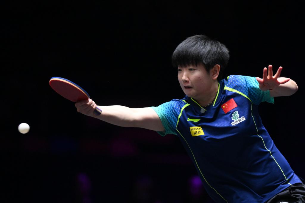 9月13日,孫穎莎在比賽中回球。新華社記者 張金加 攝