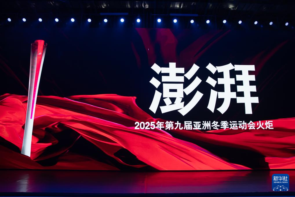 10月30日,活動現(xiàn)場大屏幕顯示亞冬會火炬。本屆亞冬會火炬主題為“澎湃”,寓意著本屆亞冬會將充滿活力與激情。新華社記者 張濤 攝