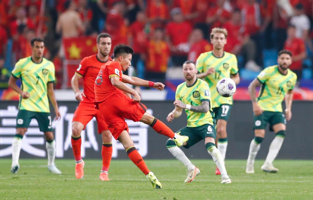 本場比賽,杭州奧體中心體育場涌入了超7萬名球迷,不過現(xiàn)場巨大的聲浪并沒能給國足帶來好運(yùn)。第16分鐘,澳大利亞隊杰克遜·歐文得球后殺入禁區(qū),黃政宇在防守時不慎滑倒,前者起腳兜射破門,中國隊0:1落后。
