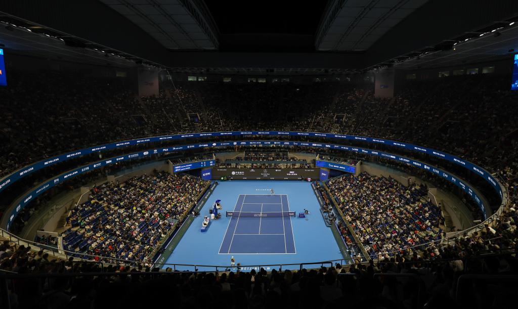 這是9月27日拍攝的鄭欽文對陣阿朗戈比賽現(xiàn)場。新華社記者 白雪飛 攝