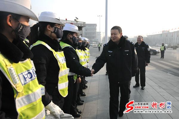 山西新聞網(wǎng)忻州訊 2016年1月1日,新年第一天,市長助理、局長楊梅喜帶領(lǐng)市局有關(guān)領(lǐng)導(dǎo)及部門負(fù)責(zé)同志赴直屬分局南城派出所、市委市政府聯(lián)勤巡邏點(diǎn)、交警七一崗看望慰問值班、執(zhí)勤同志。