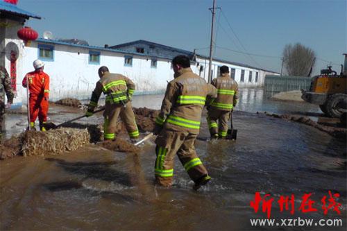 消防官兵到達(dá)現(xiàn)場,經(jīng)現(xiàn)場詢問和偵察,了解到:由于該村外農(nóng)田冬季澆水太多造成冰凍,近期氣溫回升使田地里凍結(jié)積水溶解,位于田地東北部一養(yǎng)牛場地勢低洼,冰解融水全部灌入養(yǎng)牛場,情況十分危急,中隊指揮員迅速與養(yǎng)牛場負(fù)責(zé)人聯(lián)系村民鏟車進(jìn)行填堵,同時命令中隊?wèi)?zhàn)斗員利用鐵鍬進(jìn)行堵截,在經(jīng)過大約20分鐘的迅速搶救,最終排除險情,幫村民挽回了巨大的經(jīng)濟損失。最后在與養(yǎng)牛場負(fù)責(zé)人交接好手續(xù)確定無險情后,中隊全體指戰(zhàn)員收整器材返回中隊,特勤中隊官兵快速處置,不怕苦、不怕累的精神贏得了在場群眾的一致好評。(張志遠(yuǎn) 白耀周)