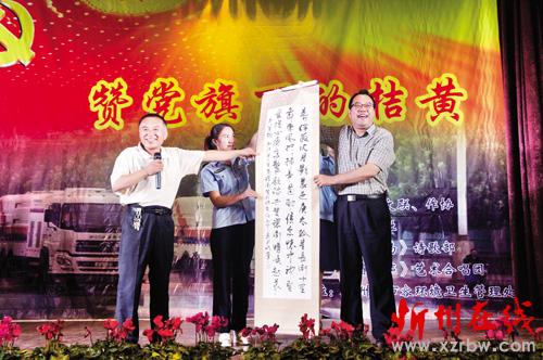 本報(bào)訊 7月3日晚8時,忻府區(qū)文聯(lián)、忻府區(qū)作家協(xié)會和遺山詩社在忻州市住建局禮堂共同舉辦了一場大型詩歌吟誦演唱會,用詩的語言、歌的韻律抒發(fā)了對黨的祝福和對環(huán)衛(wèi)工人的贊美。7月1日是黨的生日,在此之際,他們用詩歌表達(dá)對黨的熱愛,也表達(dá)對在黨旗下默默付出的勞動者們的敬意。