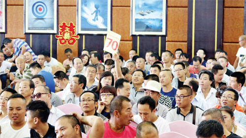 拍賣(mài)會(huì)上,每輛車(chē)的照片、車(chē)況、實(shí)時(shí)價(jià)格都出現(xiàn)在了大屏幕上,眾多競(jìng)拍者頻頻舉牌,隨著拍賣(mài)師的一次次落槌,一輛輛公車(chē)依序被成功拍賣(mài)。(實(shí)習(xí)記者 郭浩東 攝)