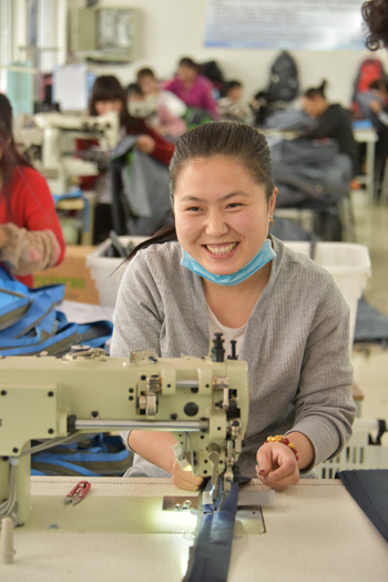 7月的繁峙,陰雨綿綿,悶熱的天氣使人慵懶不爽。然而位于縣城濱河移民小區(qū)的手工業(yè)扶貧第四工廠里卻是一片忙碌景象,只見工人們熟練的操作著機器,針線飛梭間,手中的布料變成了精美的書包。7月19日,記者走進晉北小城繁峙,實地了解箱包加工業(yè)給當(dāng)?shù)貛淼淖兓?/p>