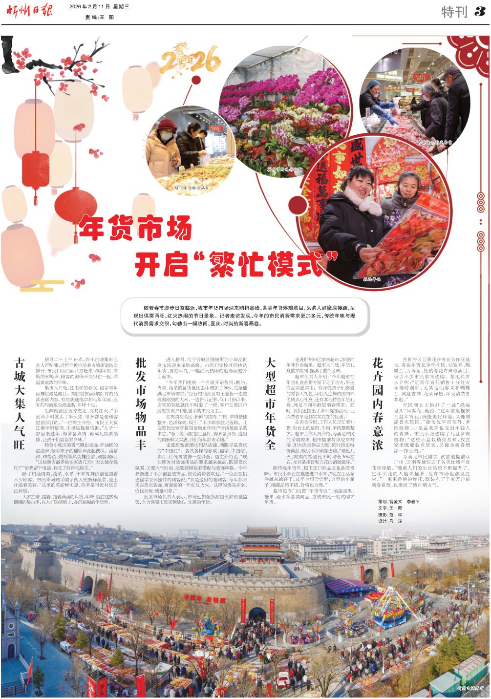 隨著春節(jié)腳步日益臨近,我市年貨市場(chǎng)迎來購(gòu)銷高峰,各類年貨琳瑯滿目,采購(gòu)人群摩肩接踵,呈現(xiàn)出供需兩旺、紅火熱鬧的節(jié)日景象。記者走訪發(fā)現(xiàn),今年的市民消費(fèi)需求更加多元,傳統(tǒng)年味與現(xiàn)代消費(fèi)需求交織,勾勒出一幅熱鬧、喜慶、時(shí)尚的新春畫卷。