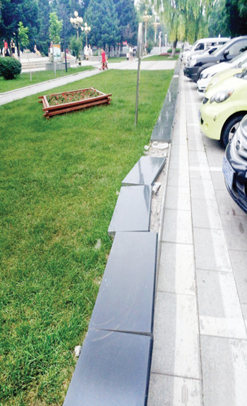 原平市市政府門(mén)前綠化帶西邊,草坪旁的地磚已損壞,急需修理,望相關(guān)部門(mén)關(guān)注。(一網(wǎng)友攝于7月6日)