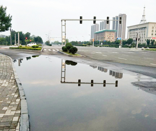 城區(qū)雁門大道與慕山路十字路口東南角,每到下大雨就有較深的積水。望相關部門及時進行處理。9月1日一網友攝