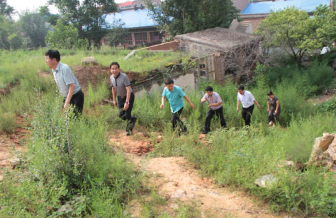 大家認(rèn)為:土堆頂部與源頭積水約50平方,不是很多,因土堆屬活土,所以遇雨水沖刷順坡流向村中。區(qū)長趙志偉指著村民們用編織袋裝土垛起來的攔洪壩,提出解決方案:首先要打一高約5米的石頭壩,找出送水通道,將水直接于防洪干渠對接。第二要通知區(qū)水利局明日就開展水利測繪,盡快拿出方案。