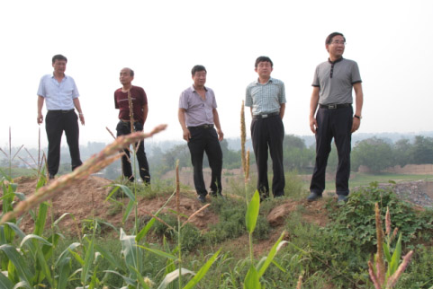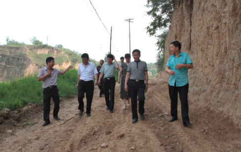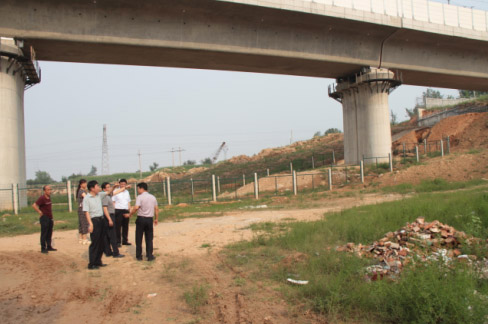 7月29日烈日炎炎,忻州氣溫高達(dá)30多度,下午16時許,忻府區(qū)區(qū)長趙志偉,副區(qū)長寧康平,忻府區(qū)國土資源局局長白蕾,解原鄉(xiāng)黨委書記丁國倉,鄉(xiāng)長王萬榮和相關(guān)部門負(fù)責(zé)人,帶著忻州市委、市政府,忻府區(qū)委、區(qū)政府對東社村村民的關(guān)懷,趕赴解原鄉(xiāng)東社村實(shí)地了解情況。區(qū)長趙志偉一行人驅(qū)車直奔現(xiàn)場,徒步來到村東南角高鐵架空橋下,認(rèn)真察看高鐵架空橋下積水形成灘涂地段和防洪渠現(xiàn)狀后,漫步爬坡而上,走到村東南土方堆放處神臺溝(地名)。親自爬上高約7、8米的土堆,沿土堆一直走到源頭察看了積水情況,經(jīng)過對現(xiàn)場地形以及土堆源頭積水情況的細(xì)致調(diào)研,一行人汗流夾背地返回村口,連口水也來不急喝就開始認(rèn)真地分析問題。
