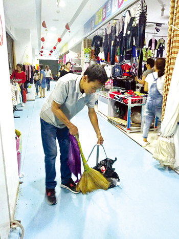 整個(gè)云河商場(chǎng)只有一層,共60多家商戶(hù),衛(wèi)生清潔一天3次,工作量雖然不是很大,卻也不輕松。記者見(jiàn)到老馬時(shí),他正在做商場(chǎng)關(guān)門(mén)前的最后一次清掃。不時(shí)有商戶(hù)喊老馬過(guò)去收紙箱和塑料袋,老馬加快了手里的動(dòng)作?!吧虉?chǎng)是公共場(chǎng)所,管理也挺嚴(yán)格的,我得隨時(shí)注意看哪里有了垃圾,或是公共設(shè)施出了問(wèn)題,要不人來(lái)人往怕出事。干凈整潔的環(huán)境代表著商場(chǎng)的形象,也能讓顧客購(gòu)物時(shí)有個(gè)好心情,這也是我工作的價(jià)值吧?!崩像R坦言,有的人衛(wèi)生習(xí)慣特別不好。商場(chǎng)里童裝生意最為火爆,有個(gè)別帶孩子的家長(zhǎng)直接讓孩子隨地大小便,不僅弄臟了環(huán)境也作了不良示范。老馬希望通過(guò)創(chuàng)衛(wèi),大家愛(ài)護(hù)環(huán)境衛(wèi)生的意識(shí)得到提高,這樣他也可以輕松點(diǎn)了。(王菲)