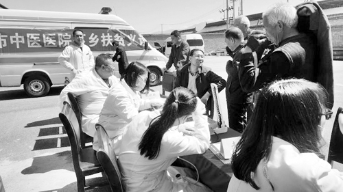 胡家溝村有貧困戶80戶。市委老干部局從2015年開始進行幫扶,緊緊圍繞“一戶一名技術(shù)工,做好精準扶貧”的工作思路,在技能培訓、項目實施、基礎建設、教育援助、文藝活動等方面開展了大量卓有成效的工作,在2016年底取得了整村脫貧的好成績。這次健康扶貧行動,是市委老干部局認真貫徹全市脫貧攻堅大會精神,鞏固成績、持續(xù)發(fā)力,不斷推進幫扶成果的具體體現(xiàn)。針對村民對疾病預防和治療方面的需求,市委老干部局聯(lián)系市中醫(yī)院組織了義診活動。市中醫(yī)院內(nèi)科、外科、心內(nèi)科等多個科室的9名醫(yī)務骨干和老專家,為貧困村民把脈問診、開方治療,使106名村民得到診療。