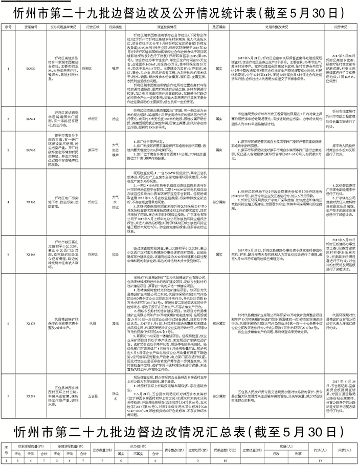 我市高度重視,立即組織查處,截至5月30日,督辦的群眾反映問(wèn)題7件已辦結(jié)。其中,確認(rèn)屬實(shí)4件,部分屬實(shí)3件。對(duì)于屬實(shí)和部分屬實(shí)已辦結(jié)的環(huán)保問(wèn)題,分別采取了相應(yīng)處理措施,其中罰款18萬(wàn)元,對(duì)13名相關(guān)責(zé)任人進(jìn)行了責(zé)任追究。對(duì)7件群眾反映問(wèn)題調(diào)查處理情況進(jìn)行了信息公開(kāi)。
