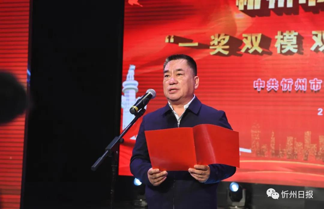 秦書義宣讀《中共忻州市委忻州市人民政府〈關(guān)于表彰2020年忻州市脫貧攻堅(jiān)“一獎(jiǎng)雙模雙先”的決定〉》。劉紀(jì)森攝