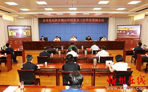 全市易地扶貧搬遷拆除復(fù)墾推進(jìn)會會場。范濤 攝