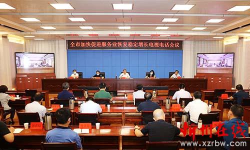 全市加快促進(jìn)服務(wù)業(yè)恢復(fù)穩(wěn)定增長電視電話會議。范濤 攝
