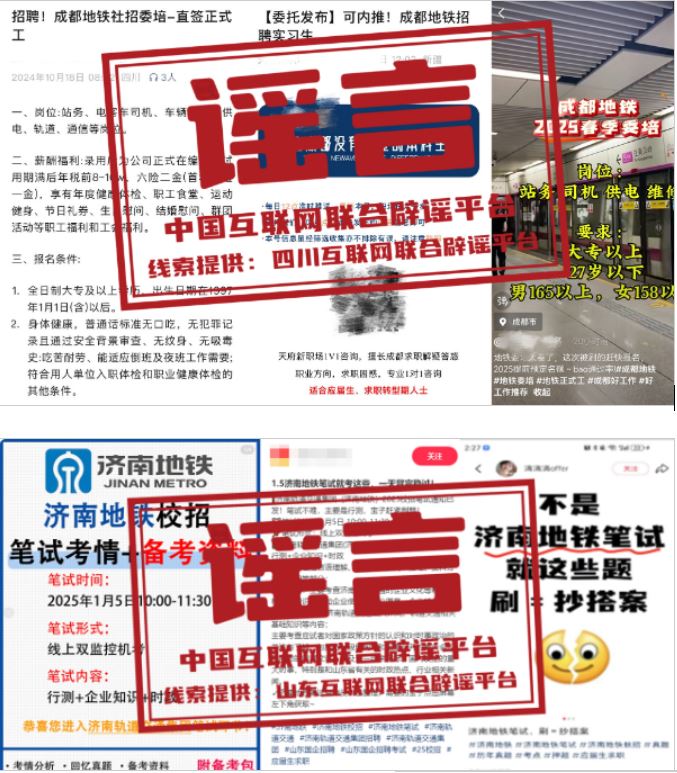 謠言:成都地鐵招聘“提前預(yù)定名額”?濟南地鐵校園招聘有“真題”?
