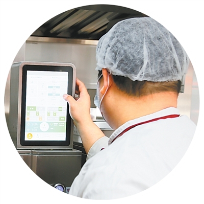 圖為廚師正在操作AI炒菜機(jī)。人民日報(bào)記者 王洲攝