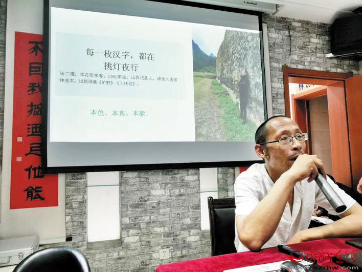 張二棍的詩歌極具特色,具有一種樸素的高貴和悲憫的神性,善于將那些被人熟視無睹的,平常、平淡、平凡的物事歌詠成詩,而且給人“縱身一躍”或者“峰回路轉(zhuǎn)”的感覺,可以說有“點石成金”的創(chuàng)作力,是近年來我國詩歌創(chuàng)作的標(biāo)桿性人物。這次特別邀請張二棍進行詩歌講座,可以說是忻州詩歌界的一件大事。