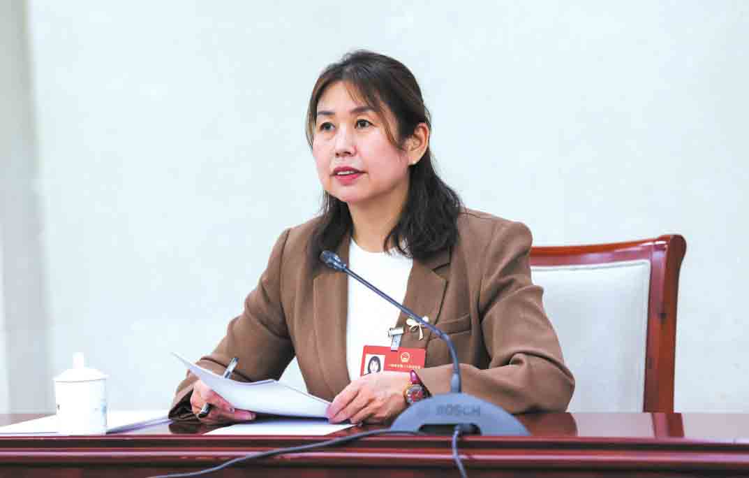 全國人大代表、山西高陶瓷業(yè)有限責(zé)任公司質(zhì)量控制員范銀蓮正在宣講兩會(huì)精神。