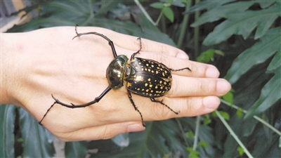 “這種甲蟲的發(fā)現(xiàn)地都是生態(tài)環(huán)境很好的茂密叢林,它的出現(xiàn)可以看做是自然環(huán)境保護得當(dāng)?shù)囊粋€標(biāo)志?!壁w力說,體形對比之下,格彩臂金龜?shù)捏w形比陽彩臂金龜要小一些。陽彩臂金龜一般的體長可以達到7厘米,而格彩臂金龜?shù)捏w長只有5厘米多。