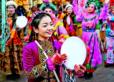 居民在位于烏魯木齊的新疆國際大巴扎社火活動現(xiàn)場。新華社發(fā)