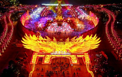游客在河北省唐山市2025年第六屆唐山南湖春節(jié)燈會游覽。新華社發(fā)