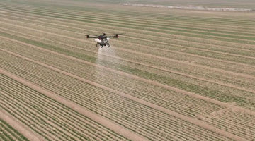 圖為一架正在陜西省渭南市臨渭區(qū)官邸鎮(zhèn)廟王村麥田進(jìn)行作業(yè)的無(wú)人機(jī)。(受訪(fǎng)者供圖) 記者從渭南市臨渭區(qū)農(nóng)業(yè)農(nóng)村局了解到,作為陜西重要糧食生產(chǎn)基地,2024年臨渭區(qū)秋播小麥63.5萬(wàn)畝,由于播期土壤底墑充足,加之降水適期,今年苗情優(yōu)于常年,隨著氣溫回升,麥田春管已全面展開(kāi)。