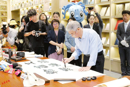3.在深圳圖書館北館,“山西姥爺”揮毫潑墨。