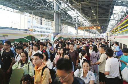 暑運(yùn)期間,探親流、旅游流、學(xué)生流疊加,全國鐵路運(yùn)輸持續(xù)保持高位運(yùn)行。這個暑運(yùn),旅客出行有點“火”。 新華社發(fā)