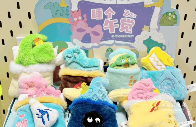 除“睡個午覺”系列外,山西博物院“逛吃逛吃”毛絨掛件、“檐之?有物”古建筑毛絨玩具、其樂“絨絨”噗噗捏捏樂毛絨掛件、“卣”點意思毛絨筆記本,以及暑期爆款文創(chuàng)發(fā)飾等新品,造型生動、實用美觀,以“輕量化”形態(tài)讓觀眾近距離感受山西歷史文化魅力。