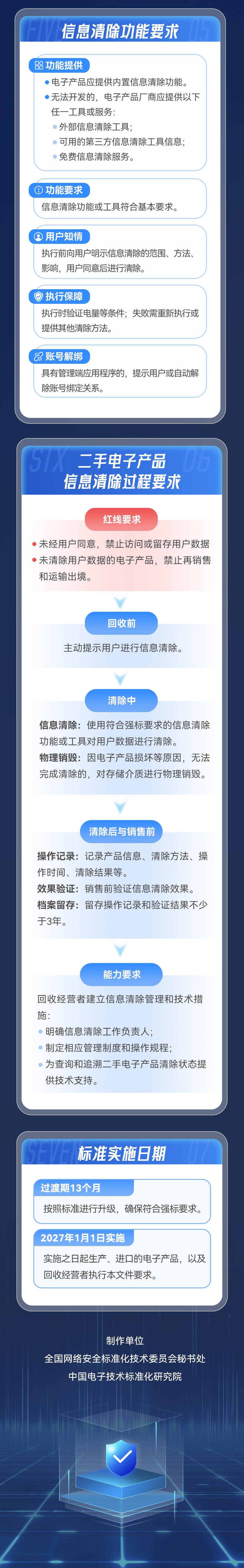 對于電子產(chǎn)品生產(chǎn)廠商,標準提出了源頭治理的要求。廠商應為用戶提供內(nèi)置的信息清除功能。如無法開發(fā)內(nèi)置功能,廠商也必須提供外部專用清除工具、可靠的第三方清除工具信息或免費的專業(yè)清除服務。操作前需明確告知用戶清除范圍及影響,并征得用戶同意。