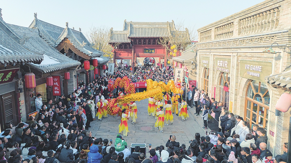 每年的“平遙中國(guó)年”都看點(diǎn)十足?!?024平遙中國(guó)年”推出了貫穿整個(gè)春節(jié)的“龍祥鳳瑞‘迎’新春”“龍躍鳳舞‘鬧’新春”“龍章鳳彩‘賀’新春”三大板塊15項(xiàng)活動(dòng)。新春祈福、點(diǎn)“靚”古城、非遺社火等民俗活動(dòng)持續(xù)上演,各地游客沉浸式體驗(yàn)了獨(dú)具平遙地方特色和晉商韻味的民俗民風(fēng)。