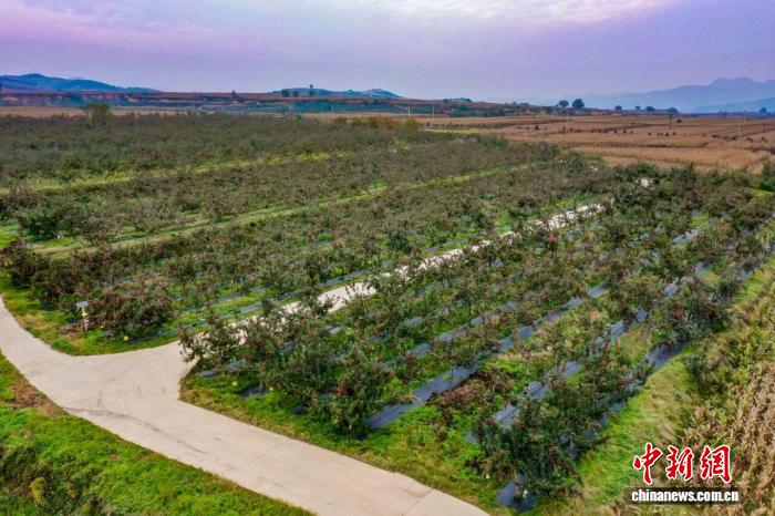 紅彤彤的蘋(píng)果如霞似火,為昔日荒山披上“紅妝”。 王晨 攝