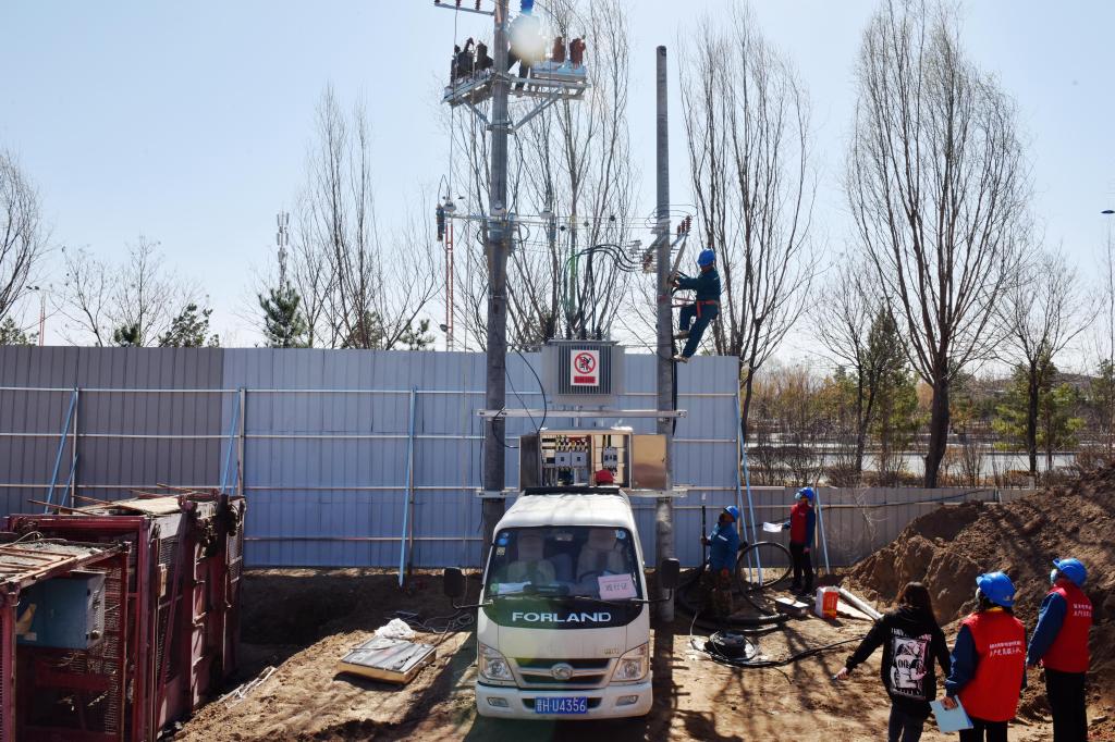 國(guó)網(wǎng)忻州供電公司員工在秀容古城電力配套建設(shè)現(xiàn)場(chǎng)敷設(shè)電纜