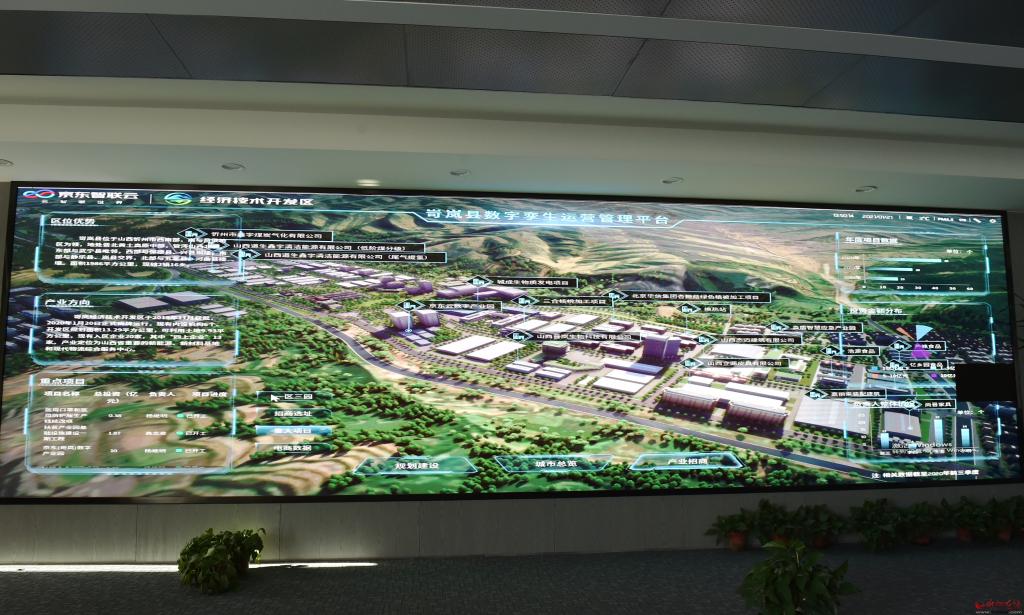 在位于岢嵐縣融媒體中心的項(xiàng)目臨時(shí)辦公地,對(duì)著占滿(mǎn)一堵墻的大屏幕,記者聽(tīng)取了京東(岢嵐)有關(guān)業(yè)務(wù)工作人員的情況介紹。