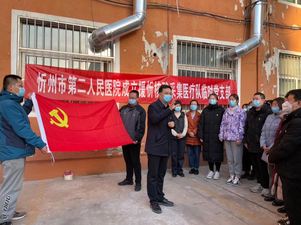 哪里有任務(wù),哪里就有黨旗飄揚(yáng)。在疫情防控一線成立臨時(shí)黨組織,是忻州市第二人民醫(yī)院黨委堅(jiān)持黨建引領(lǐng),充分發(fā)揮基層黨組織戰(zhàn)斗堡壘作用和共產(chǎn)黨員先鋒模范作用全力投身抗擊疫情防控工作的一個(gè)縮影,也是全體支援人員聽黨指揮、不負(fù)初心的使命擔(dān)當(dāng)。自忻府區(qū)發(fā)生輸入性疫情以來,該院于2月23日和25日緊急抽調(diào)101名醫(yī)療骨干隊(duì)員趕赴忻府區(qū)支援核酸采集任務(wù)。連日來,全體支援人員克服困難,全力以赴,24小時(shí)堅(jiān)守在抗擊疫情第一線,為打贏這場(chǎng)疫情阻擊戰(zhàn)貢獻(xiàn)著二院力量。