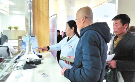 醫(yī)院工作人員引導就診病人完成注冊流程