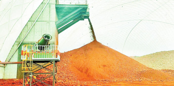 4月15日,4號氣膜倉內(nèi)正在進(jìn)行自動化礦石倒運(yùn)作業(yè),同步開啟霧炮機(jī)降塵。 高舒軍攝