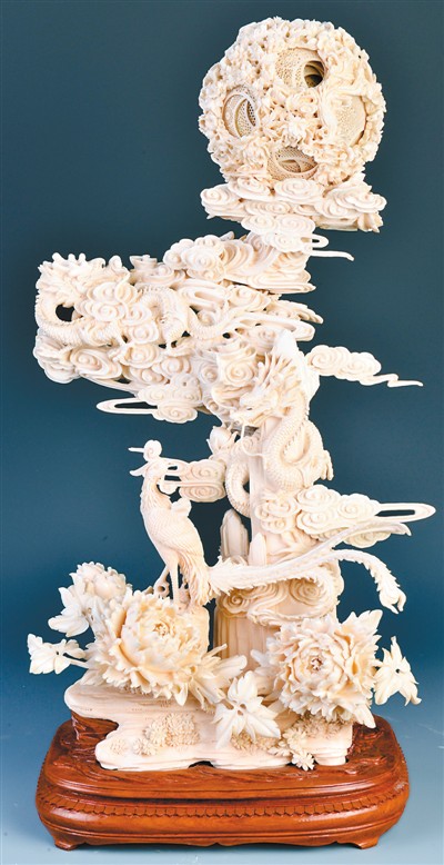 43層“龍鳳呈祥”象牙球 在廣州地鐵一號線上,有一站叫“陳家祠”。從地鐵站出來走不遠(yuǎn),便可看到一座屋脊上布滿精美雕刻的傳統(tǒng)建筑。陳家祠落成于清光緒十九年(1893年),是廣東各地陳氏宗族合資捐建的合族祠,又稱“陳氏書院”。陳家祠集廣東民間建筑裝飾藝術(shù)之大成,被譽(yù)為“嶺南建筑藝術(shù)明珠”,郭沫若曾賦詩贊其“天工人可代,人工天不如”。 這座久負(fù)盛名的百年古建筑,現(xiàn)為廣東民間工藝博物館所在地。博物館收藏各類珍貴文物與現(xiàn)代工藝精品2萬多件(套),設(shè)有11個展廳,向觀眾展示嶺南傳統(tǒng)建筑藝術(shù)和豐富多彩的民間工藝。 建筑藝術(shù)中西合璧 陳家祠是廣東現(xiàn)存規(guī)模最大、保存完好的傳統(tǒng)嶺南祠堂式建筑,總面積1.5萬平方米,主體建筑面積6400平方米,由19座單體建筑組成,呈三路三進(jìn)、兩廡九廳堂式布局。整個建筑群長廊相連,庭院穿插,廳堂軒昂,園林秀美,處處細(xì)節(jié)體現(xiàn)出匠心。 來到“陳氏書院”正門,兩扇高大的黑漆木門上,繪制著兩個4米高的門神,這是廣東地區(qū)現(xiàn)存最大的彩繪門神,格外威嚴(yán)氣派。 跨過門檻,迎面隔擋外部視線的屏門上雕刻著精美的圖案。湊近細(xì)看,每一幅圖案都生動有趣,蘊(yùn)涵寓意。大芭蕉象征家大業(yè)大,芭蕉樹下一只母雞帶著7只小雞覓食,象征兒孫昌盛。蒼勁的老竹盤繞成“?!弊?,形成“祝福圖”(諧音“竹?!保?,下方還有兩棵小竹筍,象征后代如雨后春筍般蓬勃發(fā)展。“陳家祠的建筑裝飾中大量采用吉祥圖案、神話傳說和歷史故事題材,表達(dá)祈求興旺吉祥的美好愿望,洋溢著濃郁的民間文化氣息?!睆V東民間工藝博物館高級講解員曾翔說。 廣州是海上絲綢之路起點(diǎn),自古以來是對外貿(mào)易重鎮(zhèn)。頻繁的貿(mào)易交往孕育了廣東開放包容的氣質(zhì),也影響了建筑藝術(shù)發(fā)展。陳家祠有不少建筑裝飾反映出當(dāng)時中西文化的交流。 在首進(jìn)東廳北面墀頭上,刻著一處別致的磚雕——兩個扎著發(fā)髻、穿著肚兜的小天使左右對望?!八鼘⑽鞣叫√焓古c中國年畫中的‘福娃’造型融為一體,頗具創(chuàng)意?!痹枵f。連廊和月臺運(yùn)用了西方園林常見的鐵鑄工藝,配以中式傳統(tǒng)雕花圖案,中西合璧,相映成趣。 “三雕兩塑”(石雕、木雕、磚雕、陶塑、灰塑)是嶺南傳統(tǒng)建筑常用構(gòu)件。陳家祠建筑屋頂上裝飾著層疊錯落、精致繁復(fù)的陶塑和灰塑,堪稱一大亮點(diǎn)。曾翔介紹,最頂層的陶塑瓦脊就是著名的“石灣陶”,在廣東佛山石灣鎮(zhèn)燒制而成,內(nèi)容一般以粵劇故事、花卉和吉祥圖案為主。瓦脊下方的基座是灰塑?;宜艿闹谱鞴に嚤容^特別,用石灰摻入糖膠、稻草、糯米等混合發(fā)酵后,往房頂?shù)你~鐵骨架上填抹塑形,再涂上顏色?;宜軟]有經(jīng)過高溫?zé)?,容易受風(fēng)雨侵蝕而剝落掉色,每隔五六年就要進(jìn)行保養(yǎng)修復(fù)。 為了讓觀眾近距離感受嶺南傳統(tǒng)建筑的魅力,廣東民間工藝博物館常設(shè)“嶺南傳統(tǒng)建筑裝飾”展。展廳中有來自潮陽梅祖家祠的石雕,在一整塊堅硬的青石上雕出三段圖案組成的花籃,其中最纖細(xì)的“拉豬繩”寬度僅3-4毫米,令人嘆為觀止。 民間工藝爭奇斗巧 走進(jìn)陳家祠中進(jìn)主廳聚賢堂,寬敞的廳堂里還原了當(dāng)年陳氏宗族聚會議事時的擺設(shè)。聚賢堂兩側(cè)展柜陳列了多件館藏珍品,其中兩座木雕神亭格外抓人眼球。神亭是民間舉辦迎神賽會活動時安放神像或牌位的器具?!斑@兩件都是國家級珍貴文物?!痹杞榻B,深色的刻龍紋大神亭由清代廣州地區(qū)的木雕藝人打造,它看上去低調(diào),實(shí)際上做工非常考究,用材十分豐富。神亭選用烏木、影木、酸枝等名貴木材,臺階外用云石、內(nèi)用漢白玉,屋頂瓦片是螺鈿,屏門、柁墩是象牙,側(cè)面還裝上了從西洋進(jìn)口的套色玻璃。 另一件金漆木雕大神亭是民國時期作品,采用潮汕地區(qū)特有的金漆木雕工藝:先把木頭雕刻好,在木雕上刷大漆,再利用漆的黏性貼上金箔。神亭上精雕細(xì)刻各種人物、動物、花卉等圖案,金光熠熠,華麗動人。神亭中部樓閣牌匾上刻有“海國慈航”,據(jù)推測應(yīng)為媽祖誕時游神所用。 在常設(shè)陳列“嶺南民間百藝”展廳,可以看到更多巧奪天工的工藝品。象牙雕刻是廣州地區(qū)富有特色的一項傳統(tǒng)工藝,多層象牙球則是最能代表廣州象牙鏤雕技藝的作品。“這個象牙球有43層。”曾翔指著一件牙雕作品說,“它是將一塊完整的象牙鏤空為層層相套的球體,每一層都可以獨(dú)立轉(zhuǎn)動,球面上還有精細(xì)雕花?!痹缭谒未陀兄谱飨笱狼虻挠涊d,如今,象牙球最多已做到57層。 象牙球旁邊放著象牙微雕工藝創(chuàng)始人馮公俠雕刻的屈原《九歌》。拇指大的小座屏上刻有1700余字,肉眼看是密密麻麻的黑點(diǎn),置于放大鏡下,可以看見每個字筆畫清晰工整。 一把嘉慶年間的象牙鏤絲人物徽章紋折扇,體現(xiàn)了清代象牙扇制作技藝的巔峰水平。折扇共21片,通體鏤空雕刻54個古裝人物及花卉紋飾等,沒有雕刻圖案的鏤空處全用垂直象牙絲填充,牙絲細(xì)如毛發(fā),一觸即斷,在它們的映襯下,主體圖案看上去仿佛懸浮于空中?!跋笱郎鹊裙に嚻吩峭怃N西方的搶手貨,不少歐洲貴