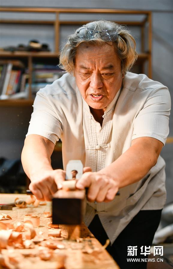 8月25日,在天津職業(yè)大學(xué)辛全生大師木藝工作室,辛全生在用刨刀刮料。今年62歲的辛全生是天津市南開區(qū)傳統(tǒng)木工榫卯技藝的非遺代表性項目傳承人。2019年9月,天津職業(yè)大學(xué)為發(fā)展并傳承木工技藝,邀請辛全生作為老師給學(xué)生們授課,負責(zé)教授學(xué)生們榫卯結(jié)構(gòu)知識和木藝家具制作等實用技巧,并于2019年底在校內(nèi)建立辛全生大師木藝工作室。 辛全生出生于匠人家庭,他聽從父親的建議從16歲開始學(xué)習(xí)木工。40余年的木工生涯,辛全生經(jīng)歷過木工行業(yè)曾經(jīng)的紅火和后來的逐漸衰落,也曾在最艱難的時候做過別的營生。但無論如何,辛全生始終忘不了自己的木工身份。“老祖宗留下來的東西不能丟了,要傳承下去,否則將來的后代誰都不知道木工榫卯技術(shù)的存在了。”辛全生說。 近年來,有近百名不同職業(yè)、不同年齡的人慕名前來拜辛全生為師,學(xué)習(xí)傳統(tǒng)木工榫卯技藝。辛全生說,我會讓徒弟們學(xué)好木工榫卯技藝,讓中國的傳統(tǒng)手藝發(fā)揚光大。新華社發(fā)(孫凡越 攝)