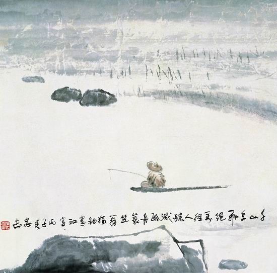 陳忠志《獨(dú)釣寒江雪》。來自人民網(wǎng)書畫頻道“人民美術(shù)館”