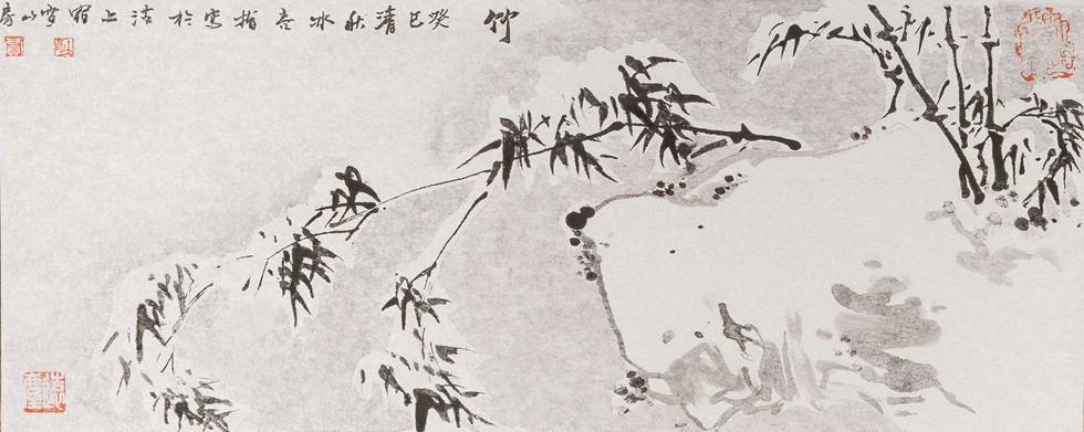 說起賞雪,張岱的《湖心亭看雪》可謂較具代表性的一篇。“霧凇沆碭,天與云與山與水,上下一白。湖上影子,惟長(zhǎng)堤一痕、湖心亭一點(diǎn)、與余舟一芥、舟中人兩三粒而已。”作者運(yùn)用白描的手法,生動(dòng)地寫出天空、云層、湖水之間白茫茫渾然難辨的景象。雙目所及之處,不過一道長(zhǎng)堤的痕跡,一點(diǎn)湖心亭的輪廓,還有一葉扁舟而已。