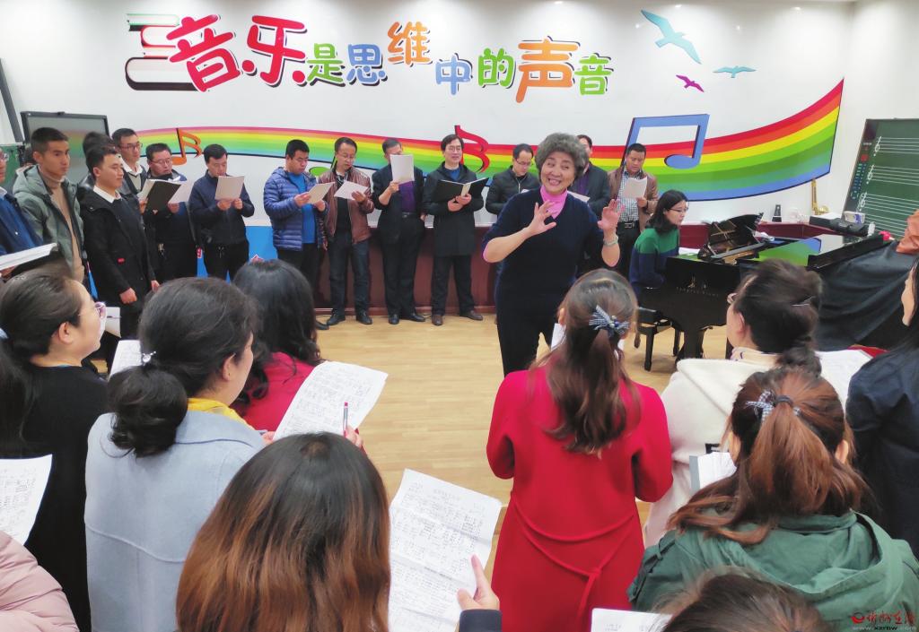 李克為靜樂童聲合唱團(tuán)排練節(jié)目